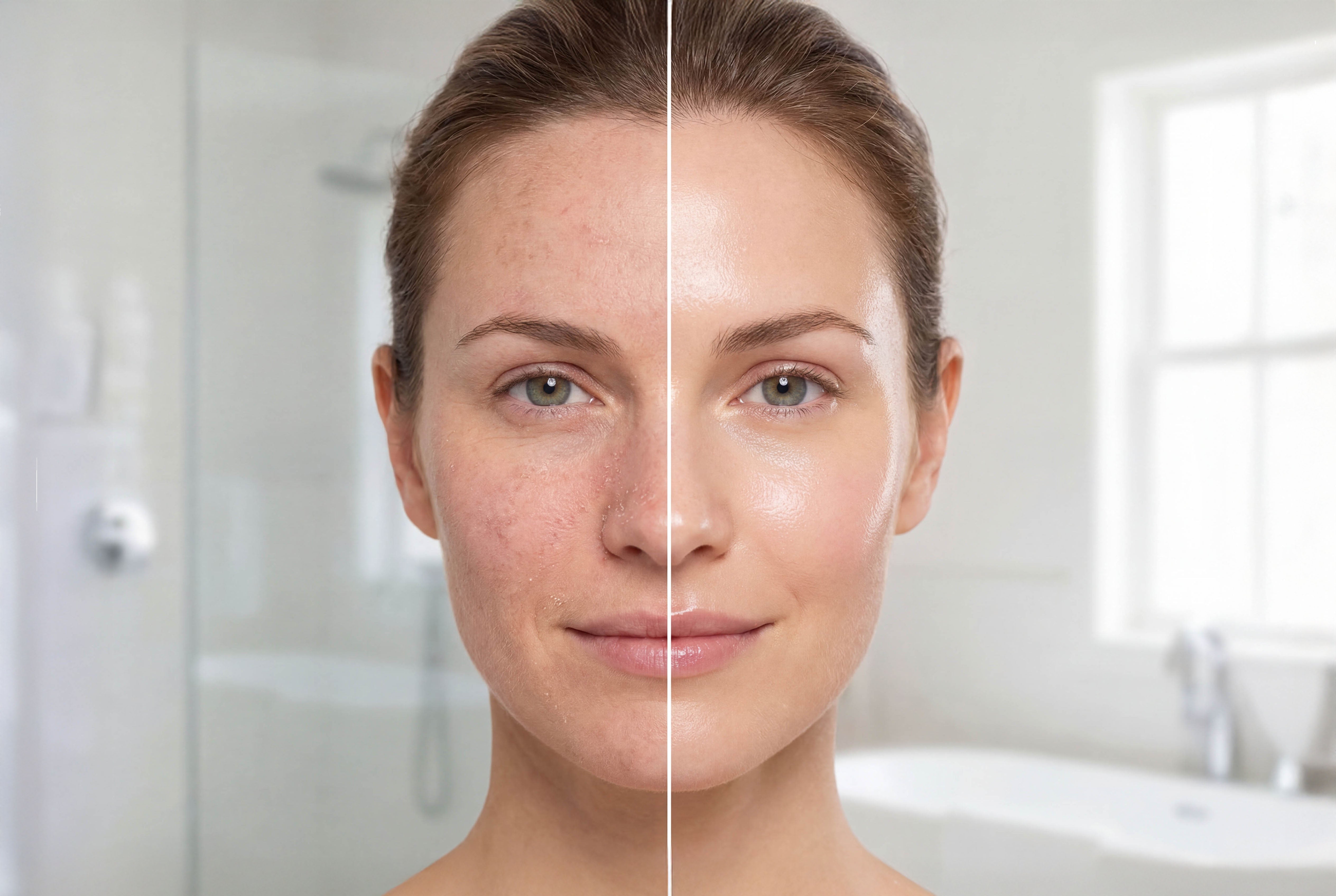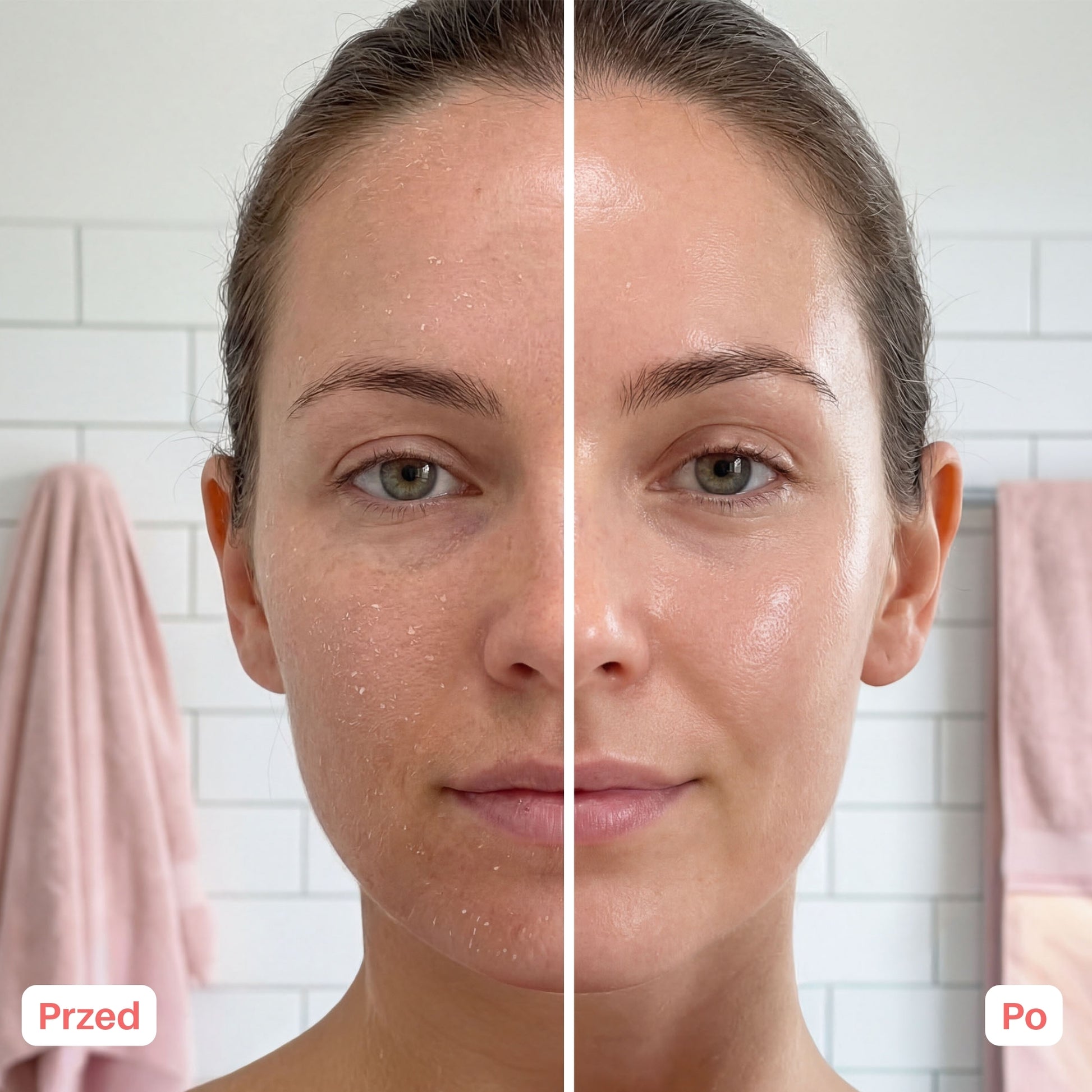 Pomaga pozbyć się suchej, szorstkiej skóry, zaskórników, pozostałości po kosmetykach oraz sztucznej opaleniźnie – bez potrzeby używania dodatkowych peelingów.
